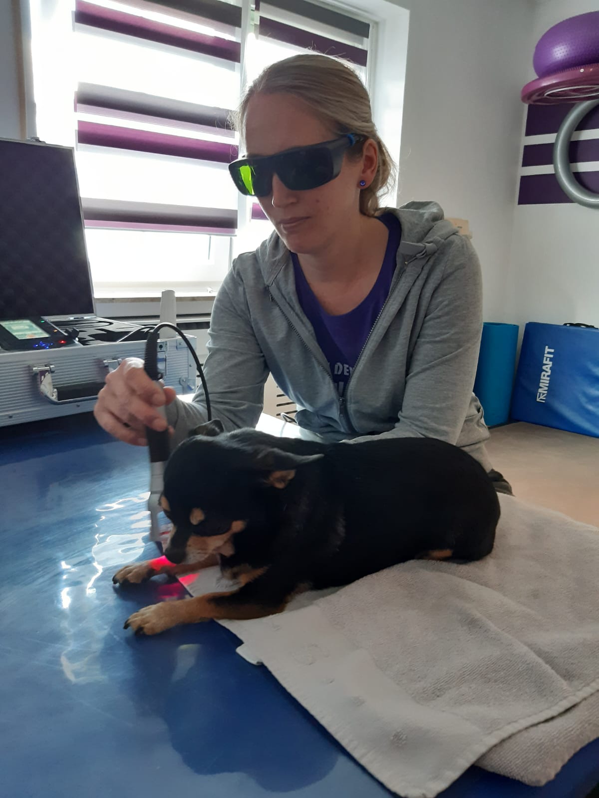 Ich arbeite mit einem leistungsstarken Therapie Laser der Klasse 4 von Theravet.